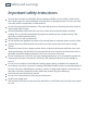 6 Safety and warnings Important safety instructions Use only dry oven mitts or potholders. Moist or damp potholders on hot surfaces could result in burns from steam. Do not let potholders touch hot areas or heating elements. Do not use a towel or a bulky cloth for a potholder. It could catch fire. Do not heat unopened food containers. They can build up pressure that may cause the container to burst and result in injury.