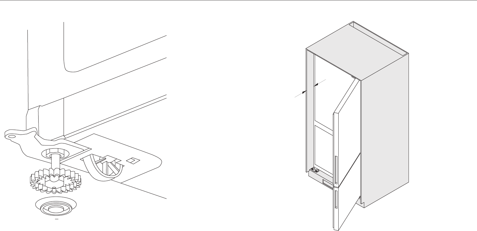 3 Lift the front edge of the product and slide the integration foot under the levelling foot.