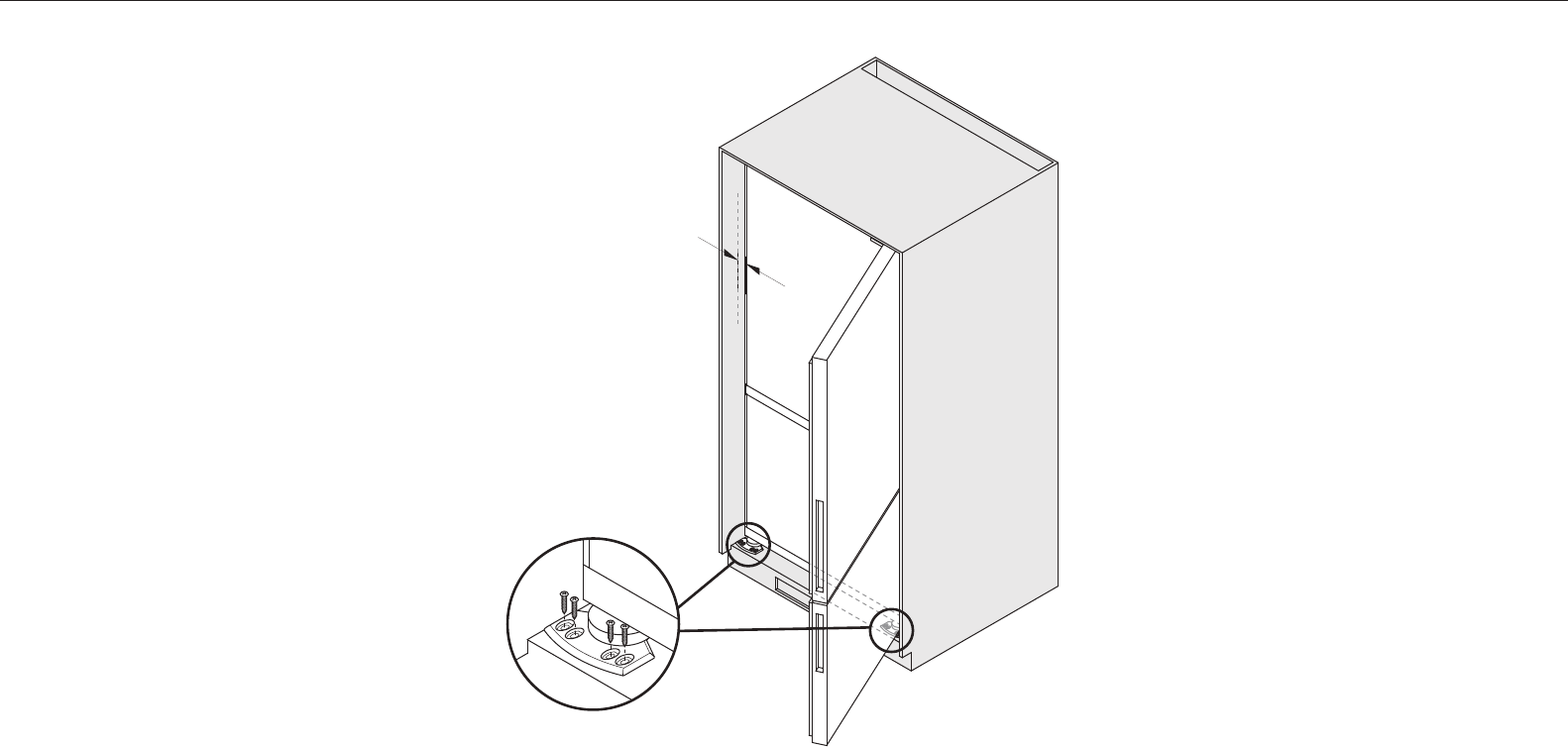This will set a 20mm (3/4”) gap between cupboard and refrigerator.