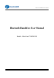 BlueTone™ BTHF205 User Manual 1. Introduction 1.1 Bluetooth Technology Bluetooth is an internationally standardized technology supporting short distance wireless communications. Any two Bluetooth-compatible equipments, such as mobile phone, PDA、PC, headset, mouse, keyboards, printer, etc. can wirelessly communicate with each other via Bluetooth connection. To ensure worldwide compatibility, Bluetooth operates on the globally available ISM (Industrial Scientific and Medical) frequency band. Within 2.