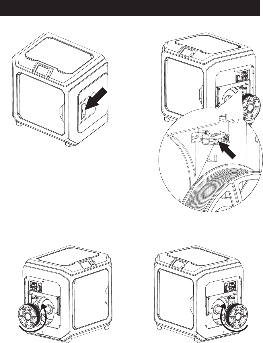Wenn das Filament auf der linken Seite eingesetzt ist, entladen Sie es bitte gegen den Uhrzeigersinn.