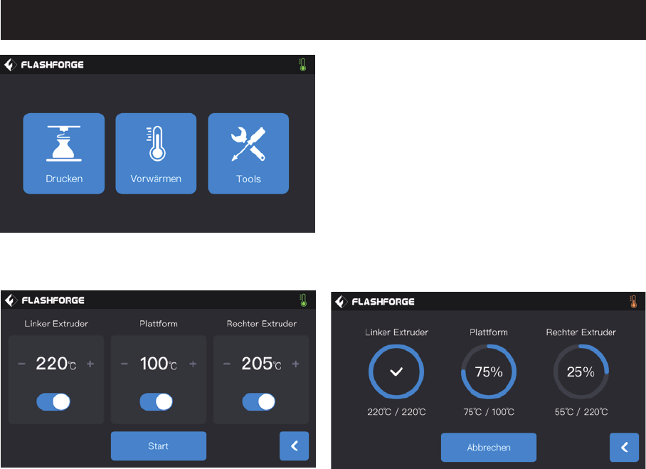 3. Start: Berühren Sie [Start], um den Extruder oder die