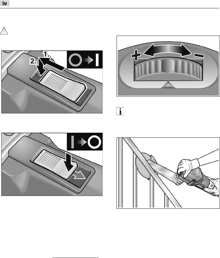 Lai izslēgtu, slēdzi atbloíējiet, nospiežot