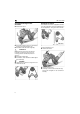 LRP 1503 VRA A kikapcsoláshoz reteszelje ki a kapcsolót a hátulsó végének megnyomásával. A csiszolószalag felrakása vagy kicserélése A kézi fogantyú beállítása Ha nehezen megközelíthetõ helyen, pl. falra szerelt korláton kell a munkát végezni, a fogantyút 2 180°-kal el lehet fordítani. Húzza ki a hálózati dugaszt. A lengõszárnyat nyomja a gumi hajtógörgõ irányába és tartsa lenyomva (1.). A csiszolószalagot fektesse a görgõkre (2.). 50 mm a minimális távolság a munkadarab és az akadály között.