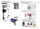 SOLUCIÓN DE PROBLEMAS SI LA VÁLVULA DE LLENADO: (PÁGINA 12) • NO SE PRENDE • NO SE APAGA • NO RELLENA EL TANQUE A: B: C: • Coloque el ensamble de la tapa sobre el cuerpo gris de la válvula alineando el brazo de la tapa y el tornillo de ajuste al lado de la manguera de relleno. REMUEVA LA TAPA Y REVISE POR MUGRE A: Cierre el suministro del agua. B: Descargue el sanitario. C: Con la mano derecha, apriete y sostenga el vástago debajo del flotador, suba el flotador con su mano derecha.