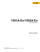 1551A/1552A Ex Mode d'emploi • Résolution réglable par l'utilisateur (0,1 ; 0,01 ; 0,001) • Grand afficheur à cristaux liquides avec rétroéclairage • 300 heures d'autonomie • Indication de pourcentage de charge restante et de pile faible • Etalonnage accrédité NVLAP (traçabilité NIST) Comment contacter Fluke Pour contacter Fluke, composez l'un des numéros suivants : • Assistance technique États-Unis : (001)-800-44-FLUKE (1-800-443-5853) • Étalonnage/réparation Etats-Unis : (001)-888-99-FLUKE (