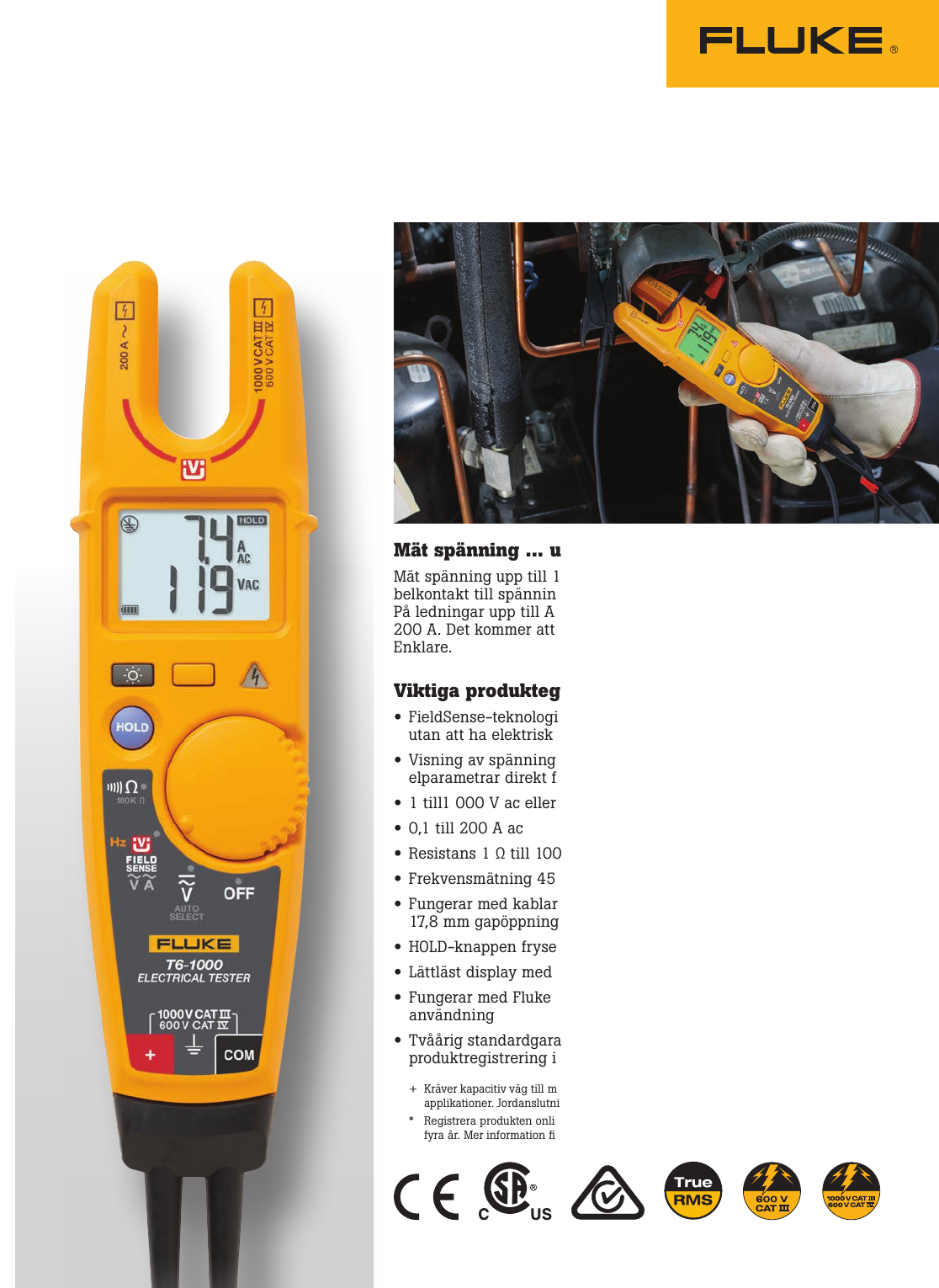 • Resistans 1 Ω till 100 kΩ (T6-1000), 1 Ω till 2 kΩ (T6-600)