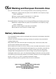 CE Marking and European Economic Area The use of 2.4GHz RLAN's, for use through the EEA, have the following restrictions: Maximum radiated transmit power of 100 mW EIRP in the frequency range 2.400 -2.4835 GHz France, outside usage is restricted to 2.4 - 2.454 GHz. Italy requires a user license for outside usage. Bluetooth® Wireless Technology for use through the EEA has the following restrictions: Maximum radiated transmit power of 100mW EIRP in the frequency range 2.400 -2.