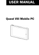 3 Getting Started 3-1 Power On/Off the System 1. Push the power button 1 second to turn on the system and hold 4 seconds to turn off the system. Note: For best touch performance, remove the protective plastic overlay from the LCD screen by peeling it away from one of the corners. Be sure to use a soft pointing device or finger tip to avoid scratching the screen during normal use. 3-2 Charging the Battery 1.
