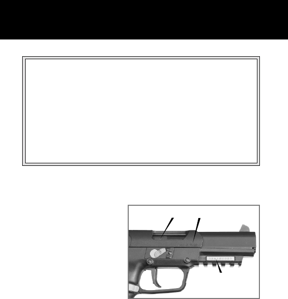 (*) The serial number of your pistol has been engraved in the right side of the frame, just