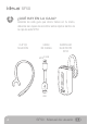 SF50 5) ¿Qué hago si escucho eco en una llamada? Ajusta el volumen del auricular o prueba a moverte a otra zona. 6) ¿Puedo limpiar el auricular? Si, pero nunca con líquidos que puedan dañarlo. Lo mejor es usar un paño seco o muy ligeramente humedecido. 7) No puedo usar todas las funcionalidades que describe el manual. Las funciones disponibles pueden variar dependiendo del aparato que haya conectado... no todas son compatibles con todos los dispositivos.