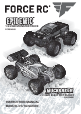 EN BOX CONTENTS 1. 2. 3. 4. 5. Force RC® Epidemic™ Monster Truck (FCES0400) or Muckraker™ Truggy (FCES04001) Force RC® Pistol Grip Transmitter (FCE14000) AA Batteries (4) Dynamite® Electronic Speed Control (ESC) (DYNS2700) Force RC® Receiver (FCE14001) OR 2 1 3 SPECIFICATIONS Frequency Run time Compatible Batteries 2.4GHz 8-10 minutes 2 2S or 1-4S LiPo with EC5 connector VEHICLE PREPARATIONS CHARGING THE VEHICLE BATTERY Neither a battery or charger are included with your vehicle.