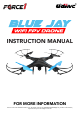 U45W Blue Jay User Manual WELCOME! Welcome to the Force1 Team, and thank you for your Force1 drone purchase. Please read this manual carefully before drone operation. (1) This drone is not a toy! It’s a pro-level drone suitable for experienced RC drone users aged 14 years and older. You accept all liability for operation. (2) This drone does not require FAA registration or permitting, but FAA rules still apply.