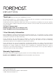 REFLECTIONS Thank you for purchasing this FOREMOST® mirror. At Foremost Groups, Inc., every product is designed with the customer in mind. Every aspect of what we do revolves around the customers needs. Should you have any questions about your mirror, we would like to address the concern quickly. Our trained staff is ready to help you with quick, efficient service. Please call our toll free Customer Service number. Toll Free: 1-888-620-3667 Monday-Friday, 8:00 a.m. To 6:00 p.m.