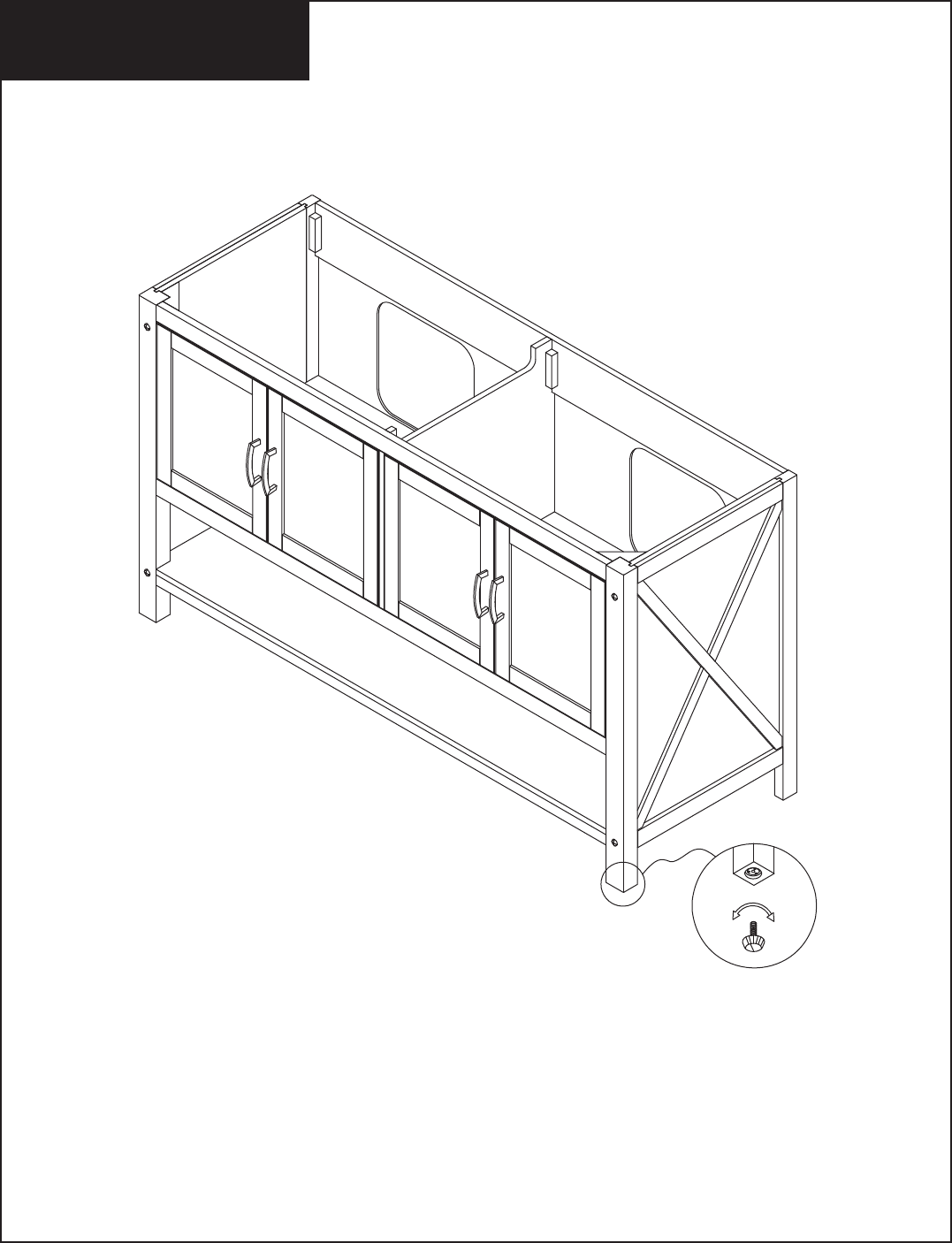 O Carefully tilt the vanity (A) either backwards or forwards to access the leg leveler. Turn it clockwise to make the leg