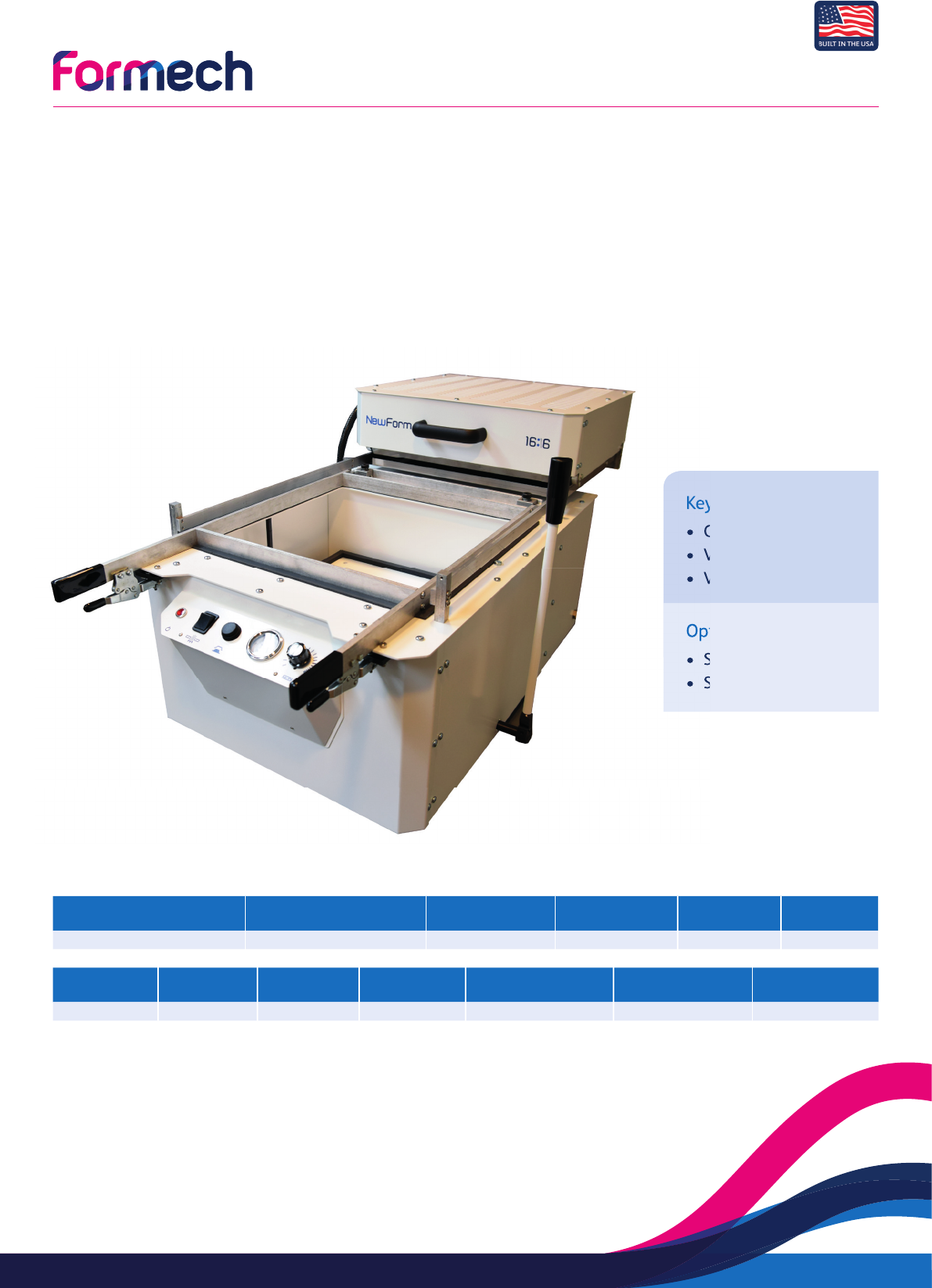 Formech machine features and specifi cations are subject to change without notice as part of our continual product development programme.