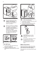 9. Make sure that the impeller of the pump can rotate. If it does not rotate, contact the Authorised Service Centre. 4. Turn the filter 180 degrees in anticlockwise direction to open it, without removing. Let the water flow out. 5. When the bowl is full of water, turn the filter back and empty the container. 6. Repeat the steps 4 and 5 until the water stops to flow out. 7. Turn the filter anti-clockwise to remove it. 10. Clean the filter under the water tap. 11.