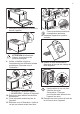 x4 1 A 2 8. Nettoyez soigneusement et séchez le bas de l'appareil. ATTENTION! N'utilisez pas d'alcool, de solvants ni de produits chimiques. 9. Veillez à identifier la taille et l'emplacement des différents isolants acoustiques. Reportez-vous à l'illustration : B Fixez les isolants acoustiques à température ambiante. 13. Remettez l'appareil en position verticale. 14. Retirez le câble d'alimentation électrique et le tuyau de vidange de leurs supports.