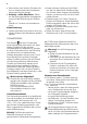 Product description 1 2 4 3 5 6 7 9 8 11 10 12 13 1 2 3 4 5 6 7 Control panel Water reservoir Drum light Fine fluff filter Coarse fluff filter Drying rack Fluff filter 8 Rating plate 9 Loading door (reversible) 10 Heat exchanger door, fluff filter, heat exchanger 11 Button for opening door in plinth 12 Ventilation grille 13 Adjustable feet Control panel Control panel 6 1 2 5 4 3 1 Programme selector and on/off switch 2 Function buttons 3 4 5 6 Start / Pause button Delay start (Zeitvor