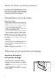 Nettoyage et entretien Attention ! N’utilisez pas de produits d’entretien pour meubles ou des produits de nettoyage agressifs pour nettoyer l’appareil. Essuyez le bandeau de commande et le corps de l’appareil à l’aide d’un chiffon humide. Nettoyage Si vous lavez la plupart du temps à basse température, veuillez effectuer de temps en temps un programme á haute température (60 ou 90°). Ceci évite d’éventuels dépôts et l’appareil sera nettoyé de l’intérieur.