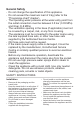 General Safety • • • • • • • • • • Do not change the specification of this appliance. Do not exceed the maximum load of 9 kg (refer to the "Programme chart" chapter). The operating water pressure at the water entry point from the outlet connection must be between 0.5 bar (0.05 MPa) and 8 bar (0.8 MPa). The ventilation opening in the base (if applicable) must not be covered by a carpet, mat, or any floor covering.