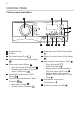 PRODUCT DESCRIPTION Appliance overview 1 2 8 3 9 10 4 5 11 12 6 7 1 2 3 4 5 6 7 Worktop Detergent dispenser Control panel Door handle Rating plate Drain pump filter Feet for levelling the appliance 8 9 10 11 12 Drain hose Inlet hose connection Mains cable Transit bolts Hose support