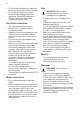 General Safety • • • • • • • • • • Do not change the specification of this appliance. Do not exceed the maximum load of 9 kg (refer to the "Programme chart" chapter). The operating water pressure at the water entry point from the outlet connection must be between 0.5 bar (0.05 MPa) and 8 bar (0.8 MPa). The ventilation opening in the base must not be covered by a carpet, mat, or any floor covering.