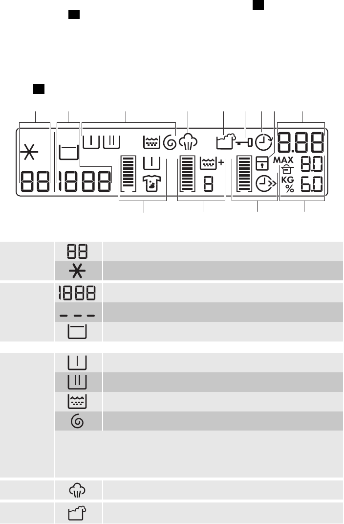 • When the programme starts, only the symbol of the phase in operation flashes.
