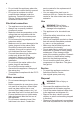 General Safety • • • • • • • • • • Do not change the specification of this appliance. Do not exceed the maximum load of 9 kg (refer to the "Programme chart" chapter). The operating water pressure at the water entry point from the outlet connection must be between 0.5 bar (0.05 MPa) and 8 bar (0.8 MPa). The ventilation opening in the base must not be covered by a carpet, mat, or any floor covering.