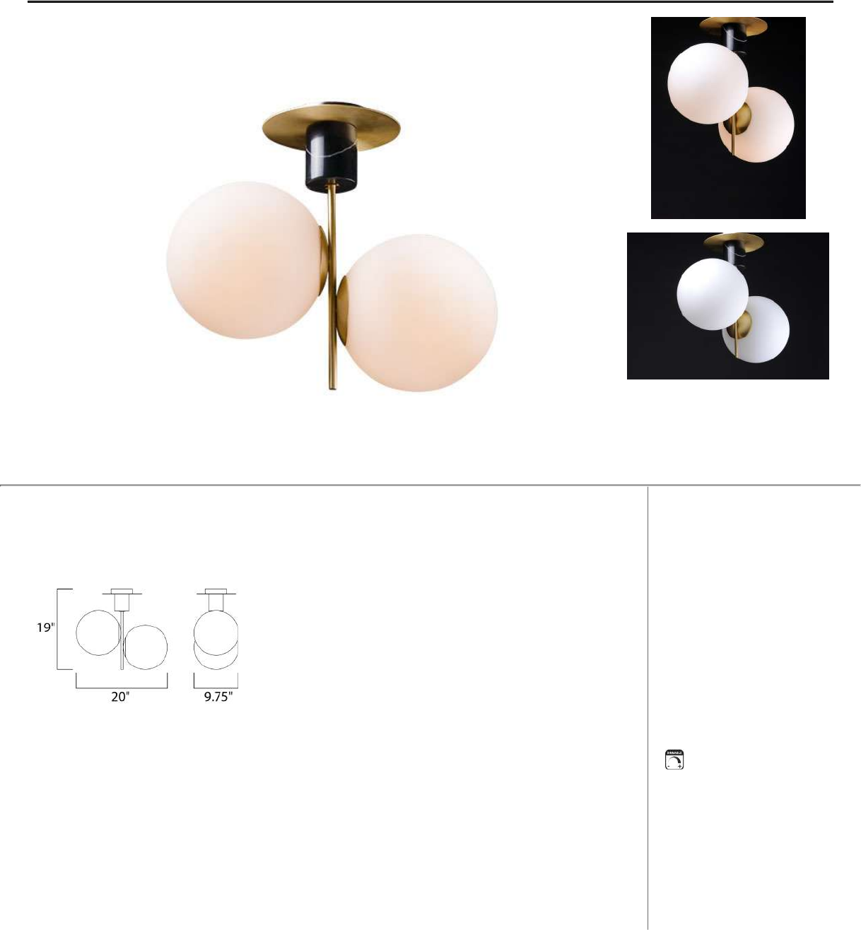 BULB : 2 x 60W (NOT INCLUDED), 60W Total