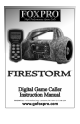 ® Using the FOXPRO FIRESTORM Digital Game Call ® Congratulations on the purchase of your FOXPRO FIRESTORM digital wildlife caller! You have chosen a highly advanced product with reliability, easeof-use, and features that are second to none. Please take this time to read and understand the information in this instruction booklet. This will ensure that you ® receive the maximum benefit from your new FOXPRO FIRESTORM. Features 1. 2. 3. 4. 5. 6. 7. 8. 9. 10. 11. 12. 13.