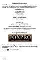 ® Important Information FOXPRO ’s goal is to provide our customers with the highest quality products in the industry. We take great pride in manufacturing our products in the USA. Please do not hesitate to contact us for assistance, comments or questions. FOXPRO® Inc.