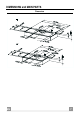 INSTALLATION Prepare Location Cover countertop or cooking surface with a thick, protective covering to prevent damaging them. 1. Mark the locations of the four 5/16 " holes and an 11” hole as shown. Use a compass or template and mark the outline of the 11” hole. A B 2" 3/4 5” 15/16 17" 5/16 5/16 " Ø 11" HOOD size A B 36" 31" 7/16 15" 3/4 48" 43" 7/16 21" 11/16 2. Drill the four holes and, using a saber saw or keyhole saw, cut the 11” hole.