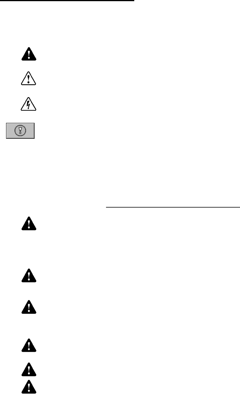 A warning sign will appear in the text of this document when a potentially hazardous situation may arise if the
