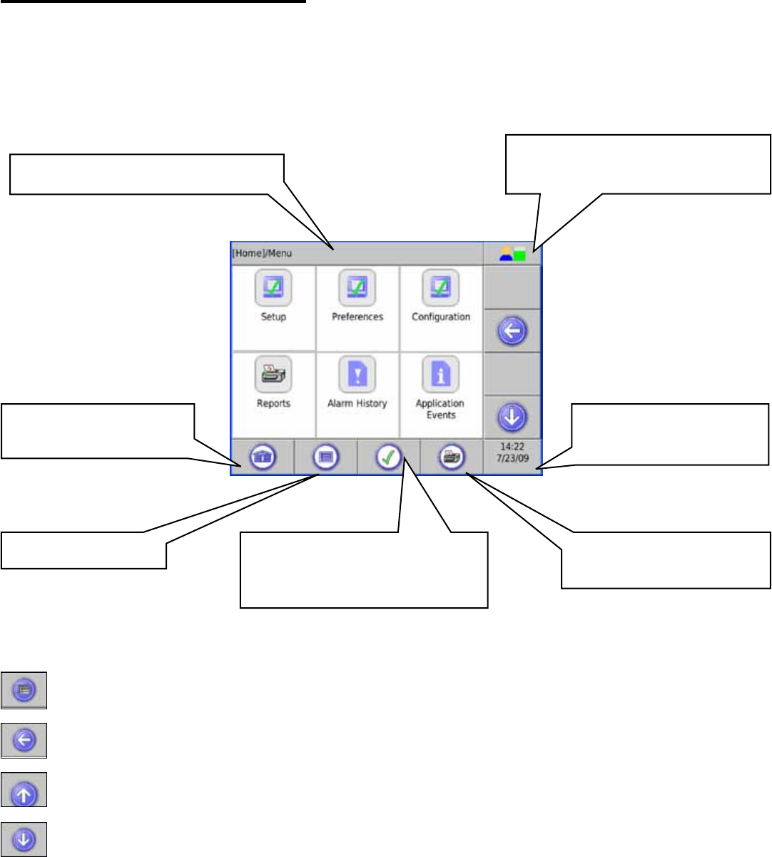 The navigation buttons are on the right side of the LCD touch screen. These change depending upon the application.