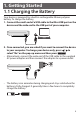 1.1 Charging the Battery Battery Precautions • If the device is not used for a long period of time, the battery may lose its charge. Please recharge the battery following the steps described above in order to use your device. • Rechargeable batteries are only to be charged under adult supervision. • Use only the supplied chargers to recharge the battery. Improperly charging a battery may damage it or the device. • Do not use an unauthorized battery.