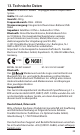 13. Technische Daten Model EVS-6000 BT Roadie™ Unplugged Mobile Amped Audio System Größe: 92 x 64 x 64 mm Gewicht: 440 g Frequenzbereich: 40Hz - 20KHz Stromversorgung: Integrierte Lithium-Eisen-Batterie/USBKabel Impedanz: Satelliten 4 Ohm + Subwoofer 2 Ohm Bluetooth: Noise Blackout Extreme, Betriebsbereich bis zu 10 Metern. Die maximale Reichweite kann variieren je nach Hindernis (wie Person, Metall, Wand usw.) oder elektromagnetischer Umgebung (wie W-LAN). © 2012 Franklin Electronic Publishers, Inc.