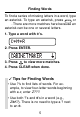 Finding Words To find a series of missing letters in a word, type an asterisk. To type an asterisk, press MATCH or . There are more matches here because an asterisk can be one or several letters. 1. Type a word with ✽’s. 2. Press ENTER. 3. Press to view more matches. 4. Press CLEAR when done. ✓ Tips for Finding Words • Use ?’s to find lists of words. For example, to view four-letter words beginning with a z, enter Z???. • Use both ?’s and ✽’s in a word (e.g., Z✽K? ).