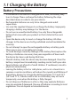 1.1 Charging the Battery Battery Precautions • If the device is not used for a long period of time, the battery may lose its charge. Please recharge the battery following the steps described above in order to use your device. • Rechargeable batteries are only to be charged under adult supervision. • Use only the supplied chargers to recharge the battery. Improperly charging a battery may damage it or the device. • Do not use an unauthorized battery.