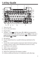 1.6 Key Guide 5 4 3 2 1 6 7 23 22 8 21 9 20 19 10 11 18 12 1. 2. 3. 4. 5. 6. 7. 8. 9. 10. 11. 12. 13 14 15 16 17 Turns on or off. Goes to the main menu. Reset button Soft keys – Hold FN and then press F1 to F6 that corresponds to the functional label at the bottom of the screen. Note: In this user’s guide, the key combination is indicated as FN + ‘functional label’, for example: FN + SAVE. Microphone Goes to Global Search or a specific dictionary indicated on the button.