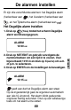 aan (als hij uit stond). Het alarm klinkt gedurende