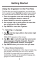 Getting Started Using the Organizer for the First Time The first time you use this organizer, you should perform a system reset. Warning! A system reset erases any user-entered information and clears all settings. 1. Turn the organizer over and carefully pull the battery insulation sheet to remove it. 2. Press ON/OFF to turn the organizer off. 3. Use a paper clip to gently press the reset button on the back of the organizer. 4. Tap ENTER to reset the organizer. ✎ Selecting a Language 1.