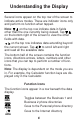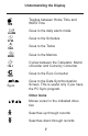 Understanding the Display Toggles between Home Time and World Time Goes to the daily alarm mode Goes to the Schedule Goes to the Todos Goes to the Memos Cycles between the Calculator, Metric converter and Currency Converter Goes to the Euro Converter Sync Goes to the Data Synchronization Screen. This is useful only if you have the PC Sync program.