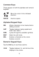 Common Keys These appear on both the alphabet and numeric keypads. / / SPACE Move the cursor in the indicated direction. Inserts a space. Alphabet Keypad Keys INS CAP SYM EDIT DEL Allows characters to be inserted when editing a record. Toggles between typing capital and lower case letters. Cycles through the available symbols. Starts the edit mode. Deletes a character at the cursor. Deletes a record. Numeric Keypad Keys Tap the 2nd key to see these options.