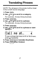 Translating Phrases NOTE: The phrases in this product will be listed in the current source language. 1. Press PHRS . 2. Use or to scroll to a category. For example, choose Doing business. 3. Press ENTER/TRANS . or to scroll to a phrase. 4. Use For example, choose Doing business. 3. Press ENTER/TRANS . or to scroll to a phrase or start 4. Use typing it. To see a phrase that does not fit on the screen, press repeatedly. 5. Press ENTER/TRANS to translate the phrase. 6. Press CLEAR when finished.