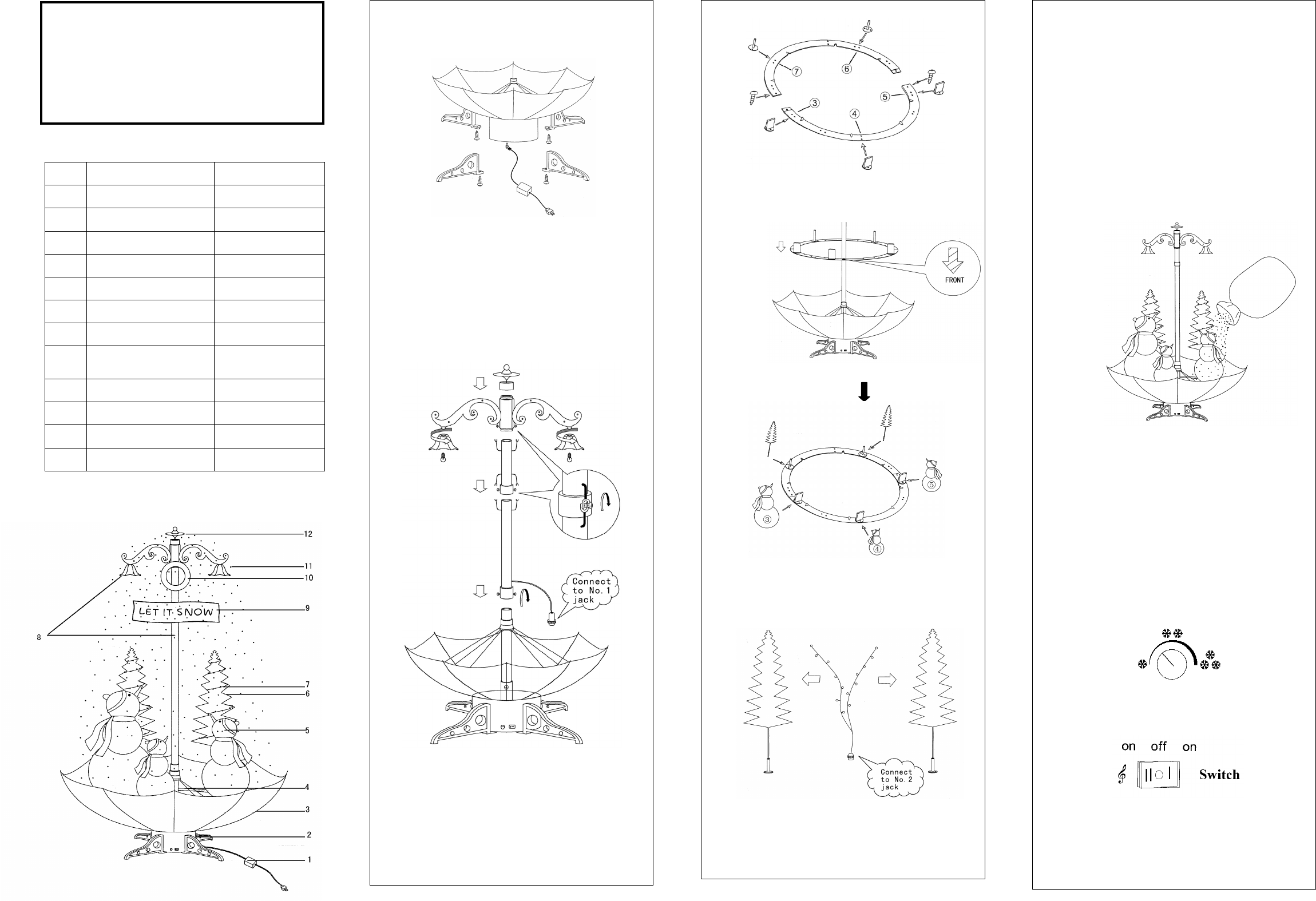 snowflakes into the umbrella shaped base. It is