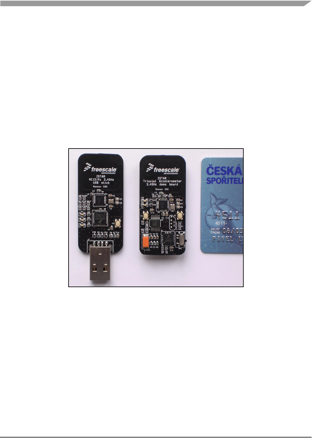 • USB stick, again with the MC13191 RF front-end, and the HC08 family MCHC908JW32 for the