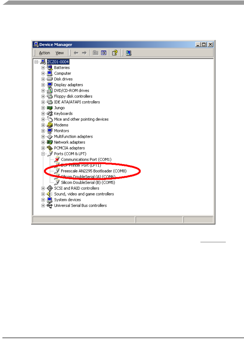6. Note down the COM port number (here, COM8); this is the port number of the Bootloader