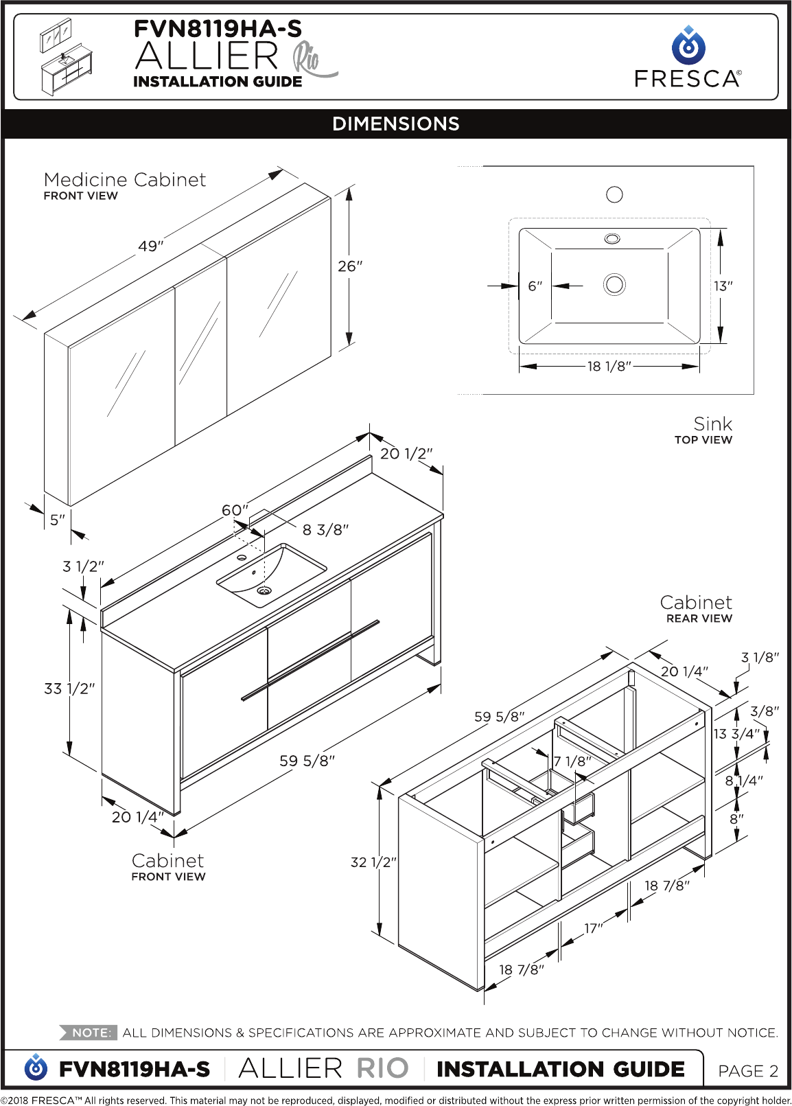 Allier Rio 60 in. Modern Bathroom Vanity Cabinet in Ash Gray