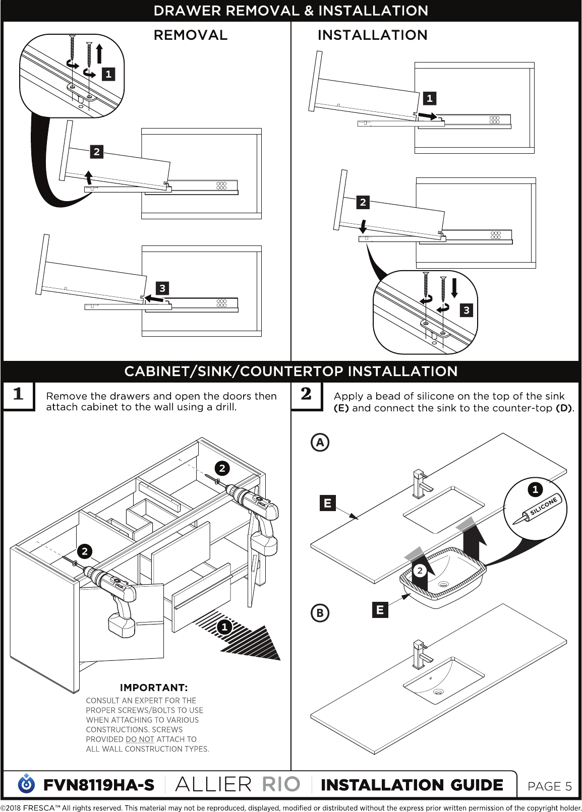 Allier Rio 60 in. Modern Bathroom Vanity Cabinet in Ash Gray